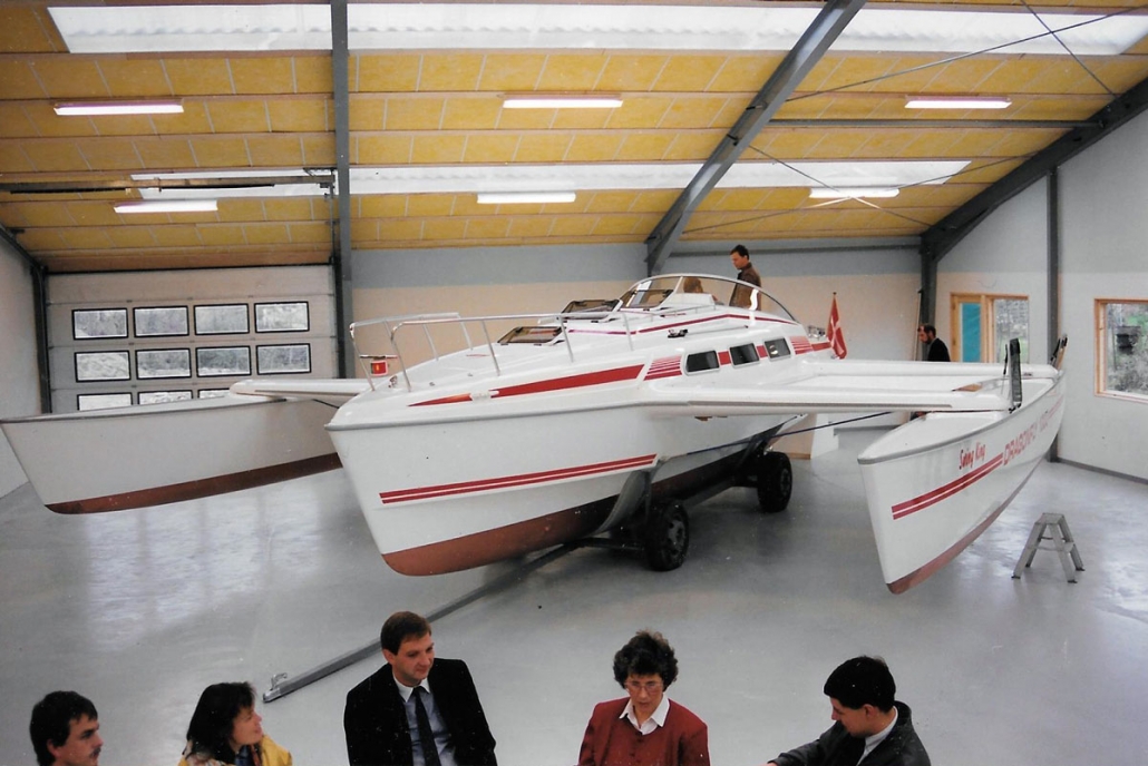 Quorning brothers Borge (Jens’ father) and Bent establish Quorning Boats on its current site outside the fishing village of Skaerbaek, to build trimarans for the European market