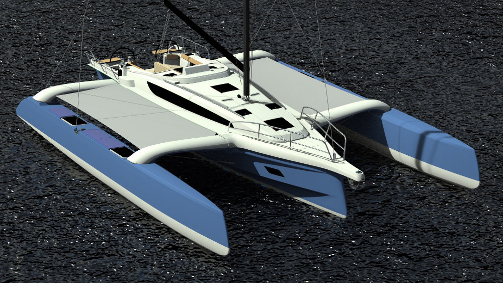 Both versions feature our wave-piercing float design. Our distinctive reverse bow is also extended to the centre hull for the first time. This creates a brand-new main hull design, for safe and comfortable upright sailing.