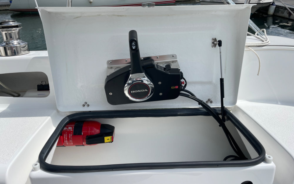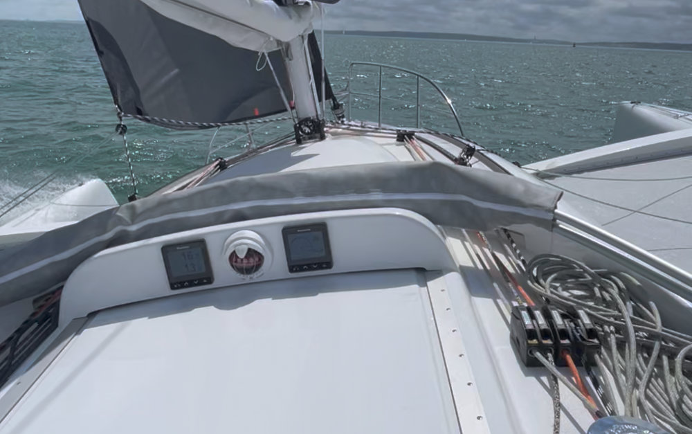 Solar panel with charge control (1 x 60W) on centre hull deck