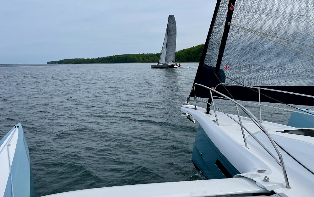 In addition to sailing the Dragonfly 36, we also toured the Dragonfly yard. Jens Quorning explained the design and engineering technology behind these special yachts before we headed back out on the water, joined by Peter solo-sailing the Dragonfly 40 carbon.